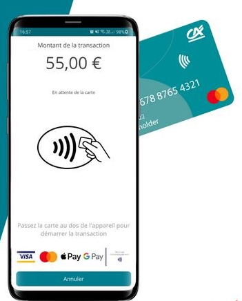 Pour encaisser un client, il suffit simplement qu’il appose sa carte bancaire sans contact ou son porte-monnaie électronique sur le smartphone. Même si le paiement est supérieur à 50€, le paiement se fera sans contact ; le client sera alors invité directement à saisir son code PIN sur l’écran du smartphone appartenant au commerçant.